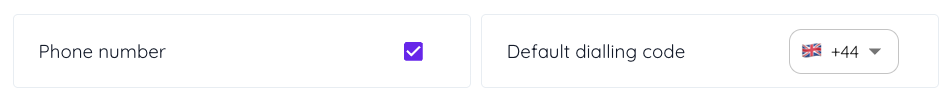 If you select to ask for a phone number, you will then be able to choose the default dialling code displayed. (Clients will still be able to select a different dialling code when adding their number.)