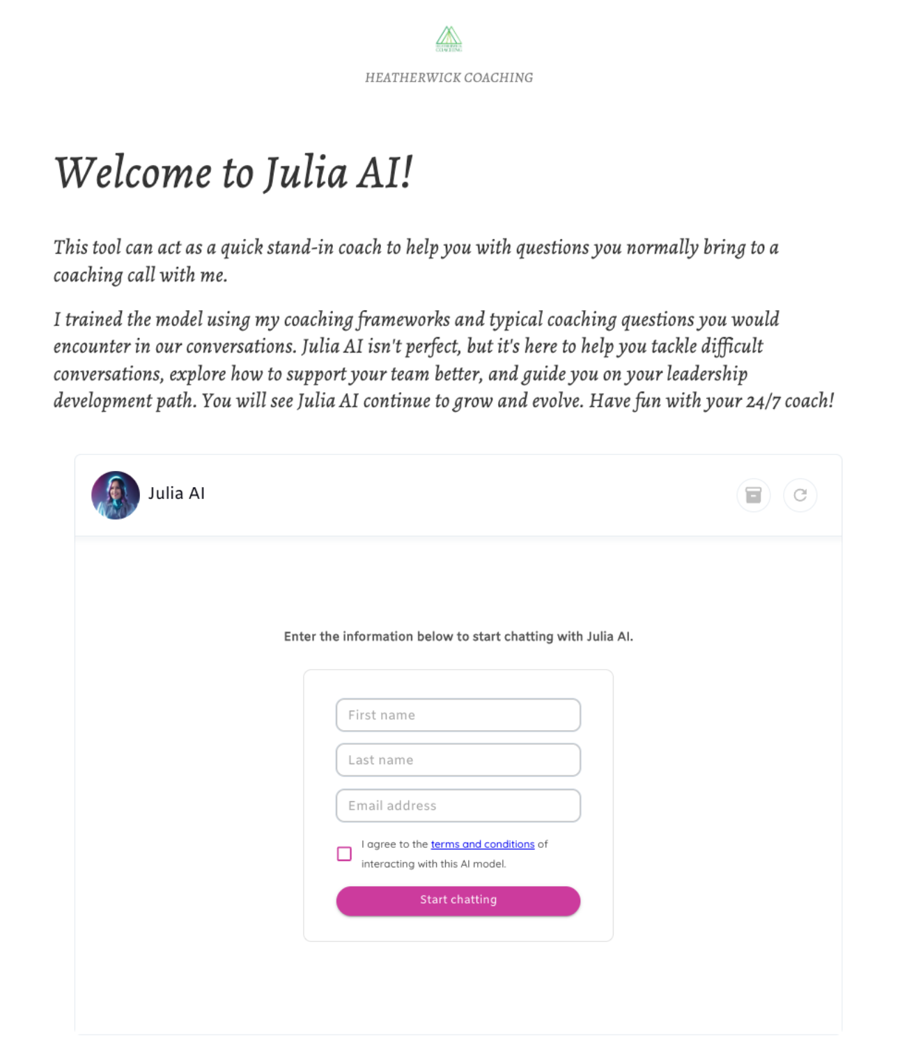 Tip: To link to or see what your AI chat looks like before you add it to your website, use the URL provided under 'Link your AI' within the Share my AI page.