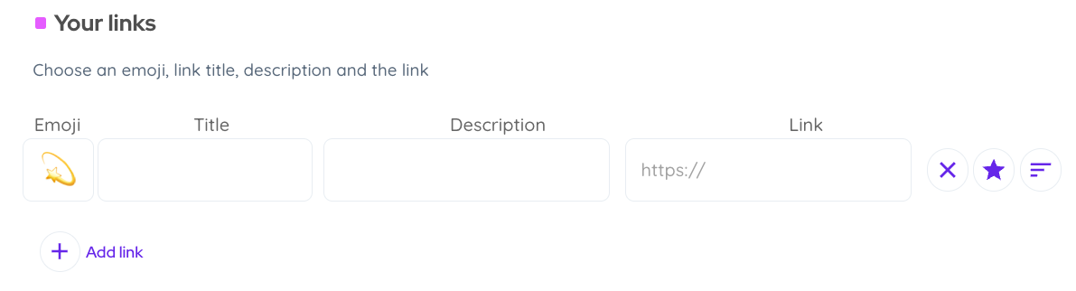 Choose an emoji, link title, description and the link.
