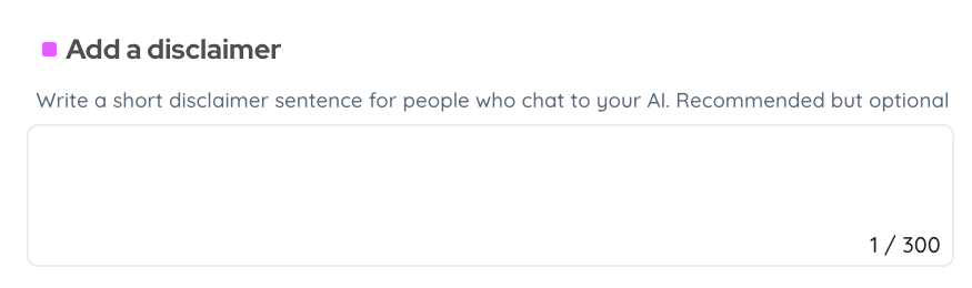 Add a short disclaimer to clarify the nature of your AI, set user expectations and to share any necessary legal information.