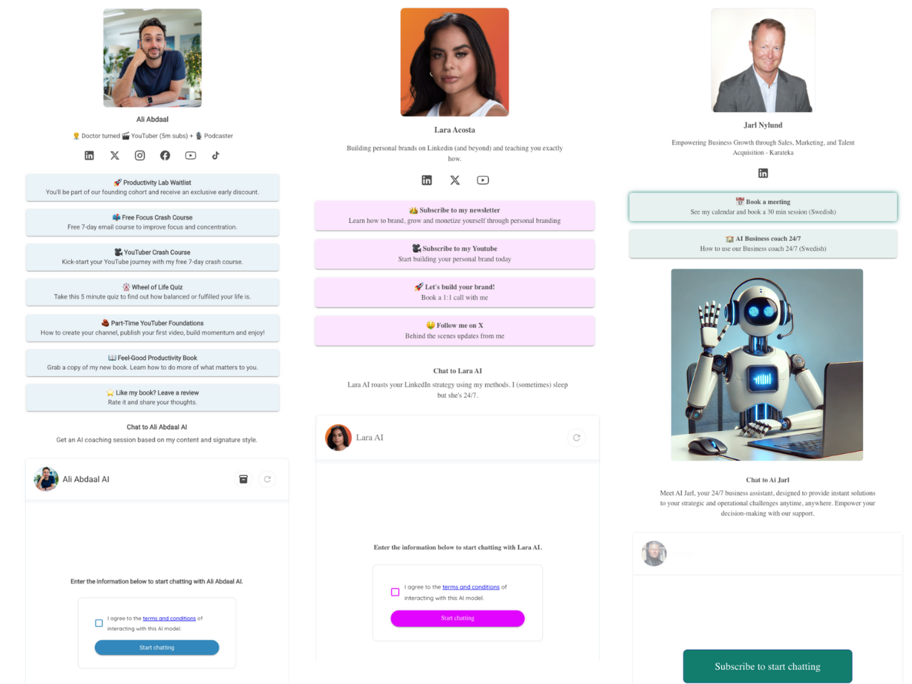 The first will show below your links. The second will show below your AI chat. These can help bring your page to life.
