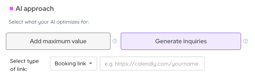 Note: Regardless of the AI approach you choose, you can still train your AI to share links, give calls to action, add value and nurture leads 🙂