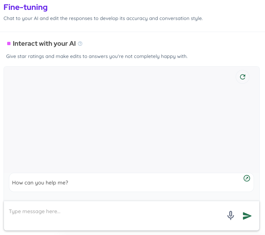 Fine-tuning involves interacting with your AI as if you were a client, testing out how it responds to different questions and topics, rating responses, and then making refinements.