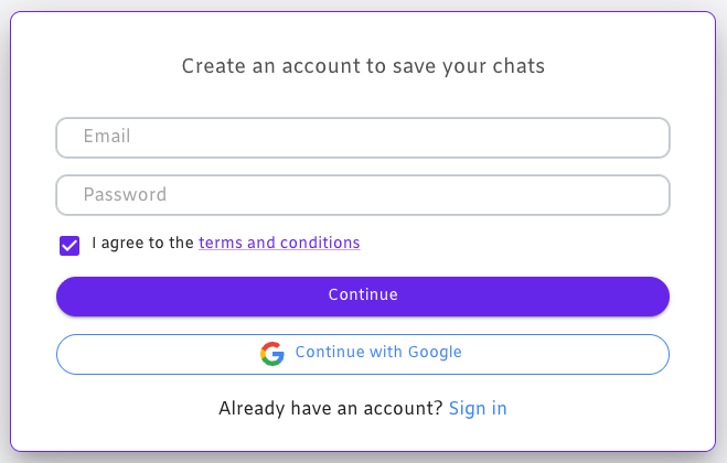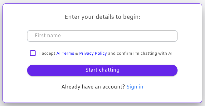 Once you've enabled chargeable access, when someone signs up to chat with your AI, they will go through these steps: