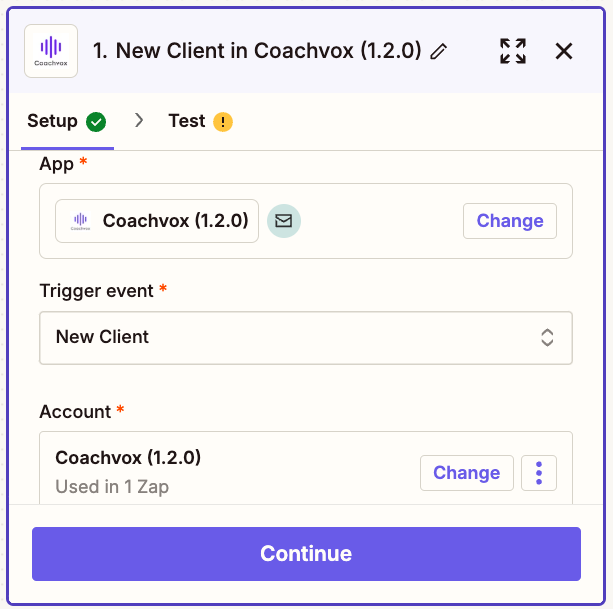 Important: If you haven't connected your Coachvox account to Zapier, follow these steps first.