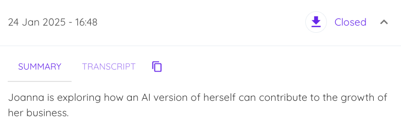 - Download the transcript by clicking the download arrow icon.